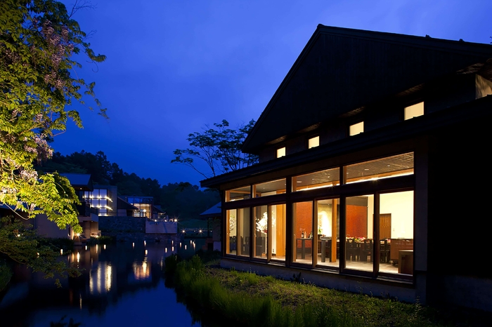 谷の集落に滞在する。離れの客室は水辺を囲み、部屋のテラスからは季節のうつろいが感じられます。軽井沢野鳥の森に面した豊かな自然環境にて、休息の時間を満喫できる宿泊施設です。