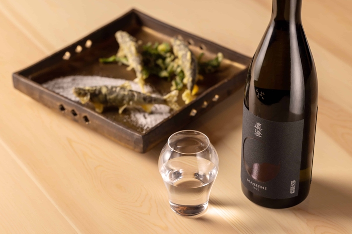 天婦羅の味わいに合わせて、日本酒やワインなどを組み合わせたペアリングを提供します。例えば、タラの芽鹿肉巻きの天婦羅には、バランスの取れた酸味と甘味が特徴のシャンパーニュ「Gosset Celebris Millesime 2007」を合わせます。また、柔らかな苦味のウグイには、ウグイの育った清流と同じく、信州の清らかな水で仕込まれ、心地よいほろ苦さと余韻にほどよい辛口を感じる信州の日本酒「真澄 漆黒」を用意します。