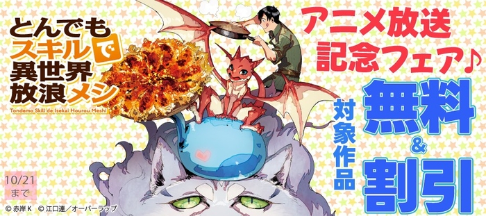 『とんでもスキルで異世界放浪メシ』(漫画:赤岸K、原作:江口連、キャラクター原案/雅)が各巻無料または割引キャンペーンを実施中!