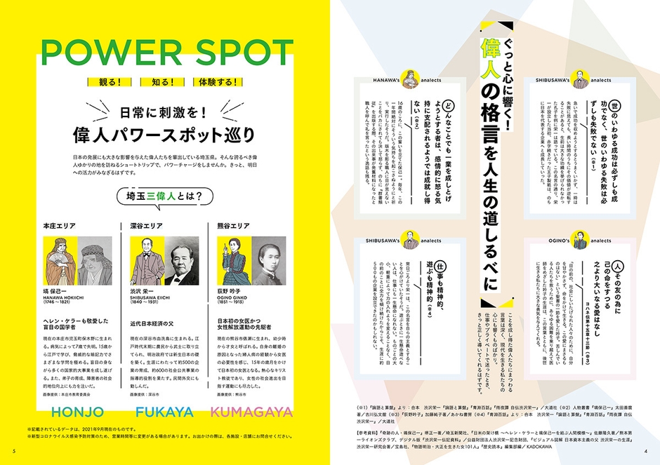 埼玉県産業労働部観光課は、埼玉県出身の三人の偉人、いわゆる「埼玉三偉人」とそのゆかりの地を紹介するフリーペーパー『POWER SPOT magazine』を、2021年10月20日(水)に発行いたします。