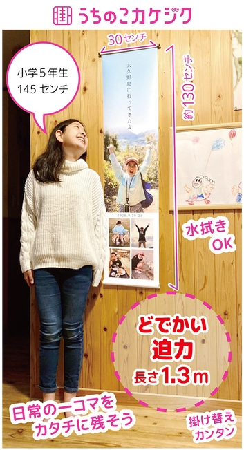 株式会社広宣(所在地:滋賀県草津市)は、お母さんが撮った愛情あふれるお子様の写真を、スマホで簡単に注文でき、ご家庭に飾れるビッグな幕にしてお届けするサービス「うちのこカケジク」を開始いたしました。