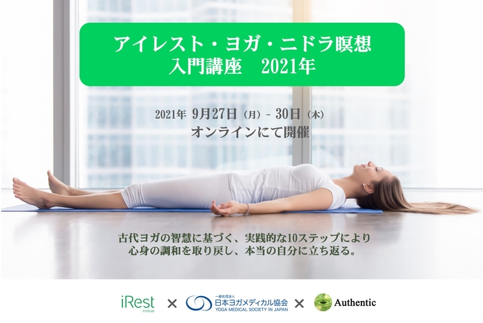 心理療法を通じ、人々の苦しみや悩みを癒し、人々の健康に寄与する Authentic(代表:佐々木 愛)は、うつ病や睡眠障害、PTSDなどへの科学的効果が証明された最先端の瞑想法を伝えるオンライン講座【アイレスト・ヨガ・ニドラ瞑想入門講座】を、 NPO法人米国アイレスト協会(代表:リチャード・ミラー)と一般社団法人日本ヨガメディカル協会(代表理事:岡部 朋子)との共催にて、2021年9月27日(月)~9月30日(木)に開催いたします。