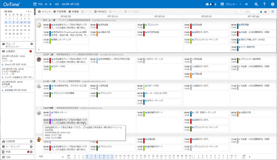 「OnTime(R) Group Calendar for Microsoft」デモサイト
