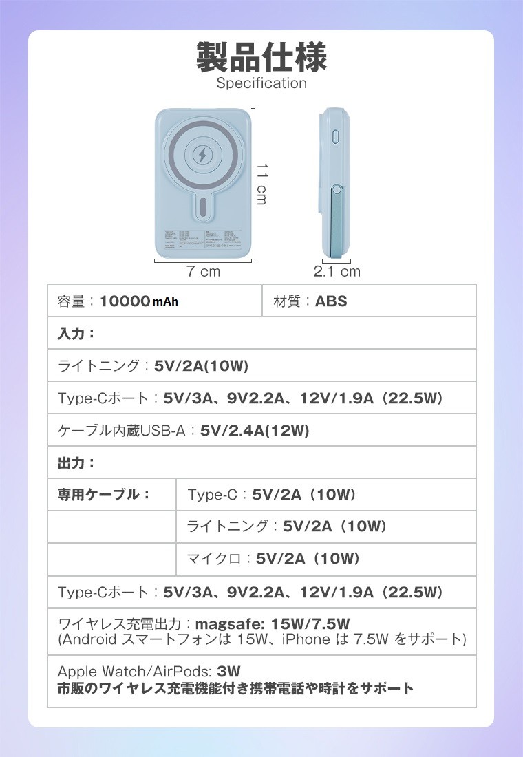 製品名:モバイルバッテリー 10000mAh MagSafe対応