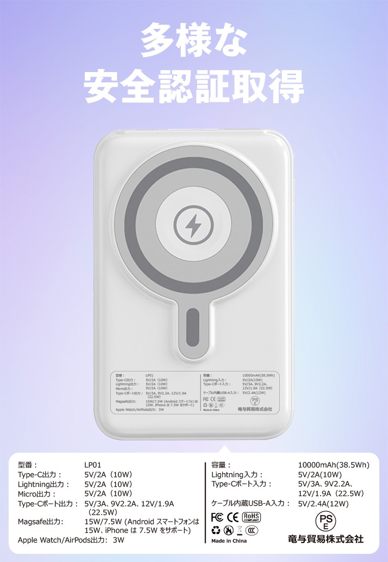 L&Lライブリーライフ株式会社(所在地:東京都代表:志田英知)は、最新のモバイルバッテリーを市場に投入しました。10000mAhの大容量ながら、最大6台のデバイスを同時に充電でき、MagSafe対応によりApple WatchやAirPodsにも対応する多機能型の製品です。