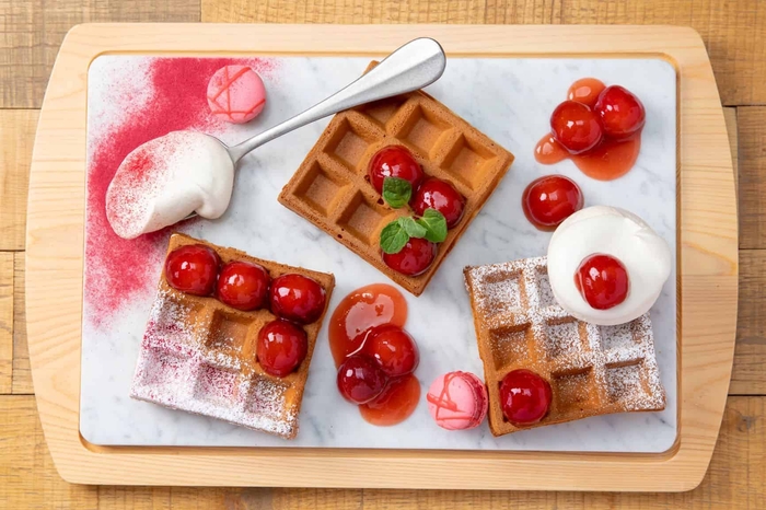 「完熟さくらんぼワッフル」「完熟さくらんぼパフェ」