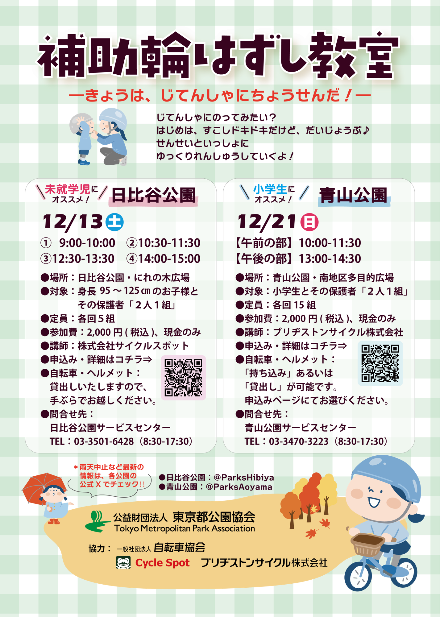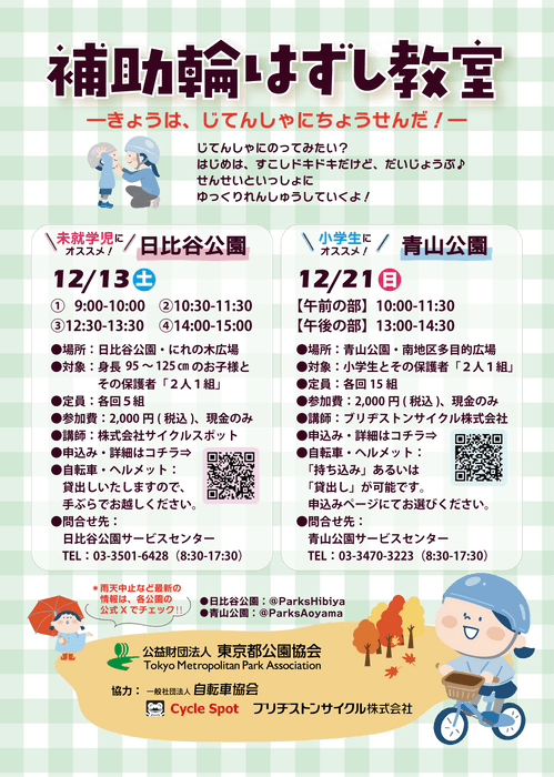 【12/13日比谷公園・12/21青山公園開催】補助輪はずし教室