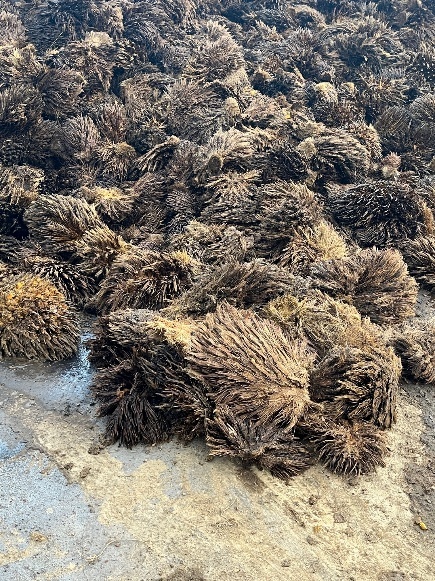 アイシン高丘は、2025年12月よりインドネシア現地法人PT ATP BIO INDONESIA(所在地:西カリマンタン州、代表取締役社長:瀧 健司)にて、バイオ燃料「Bio-M-Coke」の生産を開始しており、原材料としてアブラヤシからパーム油を生産する過程で排出される廃棄物のヤシ殻を使用しています。ヤシ殻はバイオマス燃料として用途が増えつつありますが、パーム油生産に伴う廃棄物はその他にも多く排出され、投棄された廃棄物から発生する温室効果ガスは大きな問題となっています。