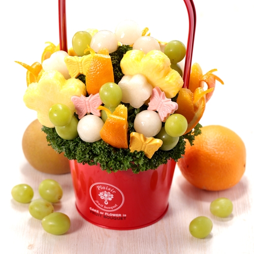 プレジール株式会社はそんなフルーツブーケの日本初の専門店で、常に季節に合わせたフルーツブーケを専用サイトにて通信販売しています。