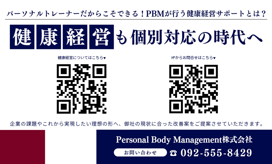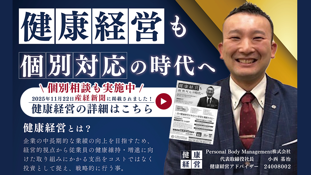 PBMでは【健康経営も個別対応の時代へ】っと題して真の健康経営サポートを実施している。