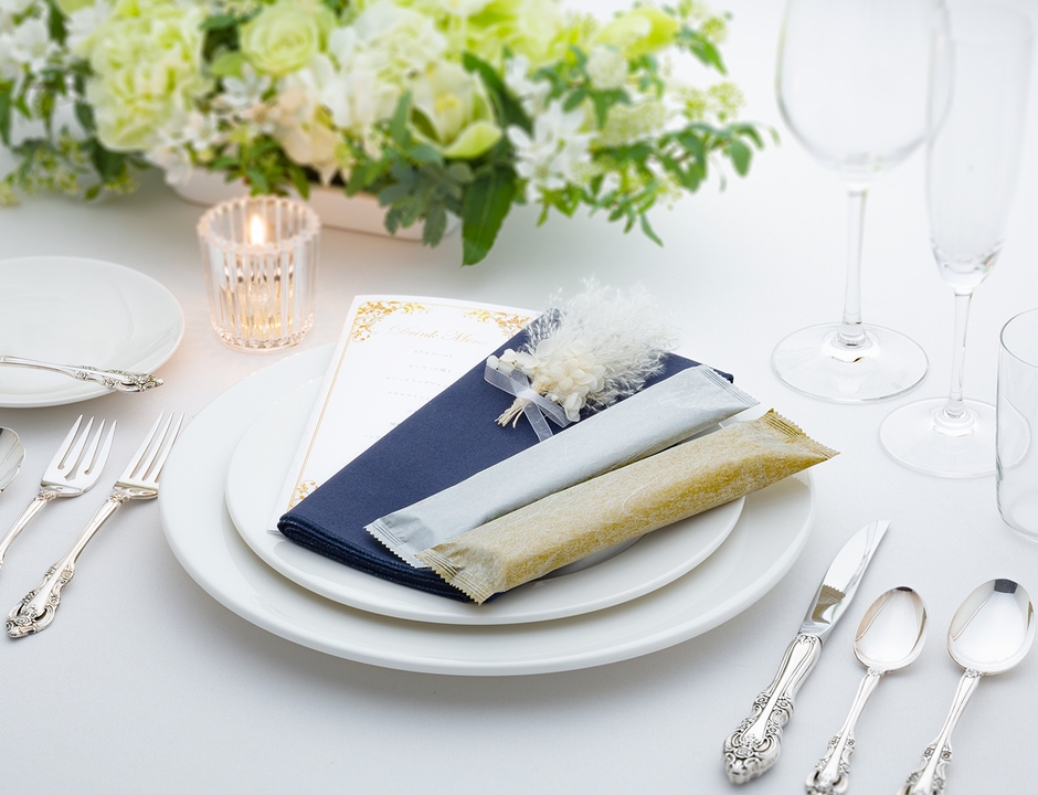 こうしたなか『金のおしぼり/銀のおしぼり』は、「ハレの日にふさわしいしつらえ」をコンセプトに、見た目の華やかさ、肌触りの良さ、使い切りとは思えない贅沢な厚みとサイズにこだわり、場が和やかになるよう願いを込め、おしぼりの形に丸めています。布おしぼりにも劣らない、特別なおしぼりが出来上がりました。
