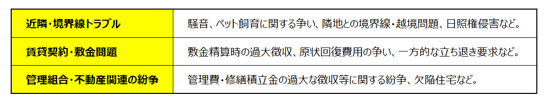 これらのデータは、住まいにおける法的リスクが日常に潜んでおり、専門的な解決を必要としていることを示しています。