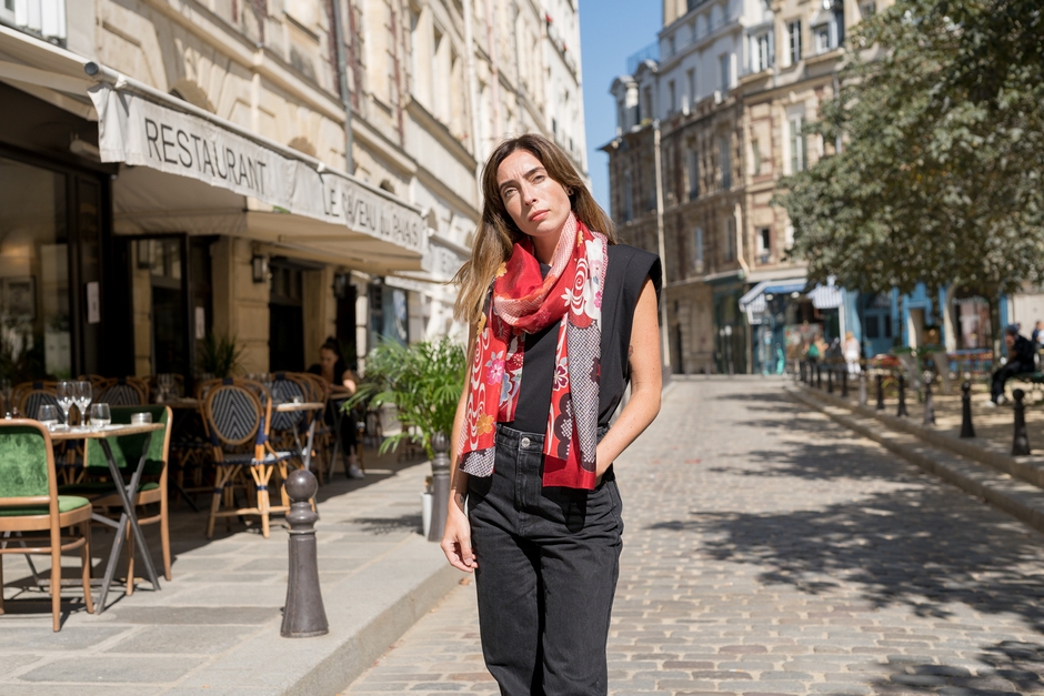 とても美しく高品質な商品なので、国内市場だけでなく海外市場にもアピールできると思います。シルク100%のスカーフであることを考えれば、価格も納得のいくものだと思いますし、日本が好きな方にも、ファッションに興味がある方にも、日本の伝統的なデザインを知ってもらうきっかけとして、最高の贈り物になると思います。特にイタリアでは非常に人気が出ると思います。イタリア人はカラフルなデザインのスカーフをよく使いますし、バッグに結んだりして使用する人もいるので、多くの方に重宝されると思います。