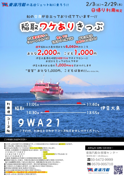 【2月限定の早春の季節便 「稲取港-伊豆大島航路」 が就航します。】