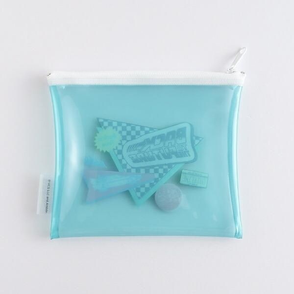 ビニール素材なので少しの水もはじきます。小物を入れたりコスメを入れるのにぴったりなサイズ感です。クリア素材なのでポーチを開けずに中を確認することもできて便利です。サイズ:13cm×17cm×1.5cm 素材:PVC