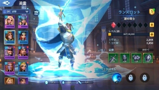 英霊の育成は、ステータスを強化するレベルアップを基礎として、パッシブスキル、武器防具の強化、英霊スキルの強化と補強要素も充実しています。この辺はSLGでありながらもRPGのような馴染みのあるキャラ育成で理解しやすいでしょう。なかでも英霊スキルの強化においては、英霊の欠片を使って星上げをする必要がありますが、本作は、ゲーム内の商店で欠片を購入できたりするのでガチャ以外の手段を用意しているあたり良心的に思えます。この欠片を一定数、商店などで集めることで、ガチャを回さずに未取得の英雄を交換できるので地道に集めてみてはどうでしょうか。