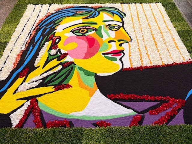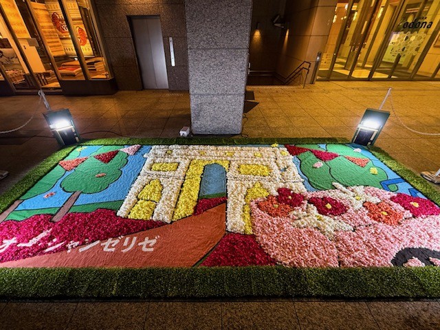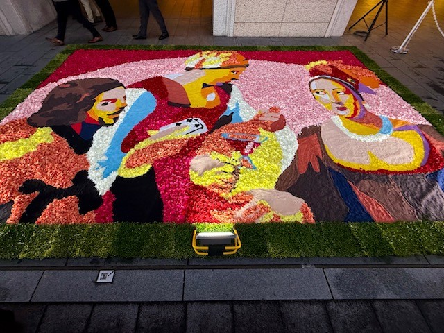 パリのルーヴル美術館やオルセー美術館に所蔵される名画、そしてシャンゼリゼ通りの賑わいを描いた作品を原画に、一般公募によって集まった120名の市民参加者とともに約20,000本のカーネーションを使って7枚の花絵を制作。御堂筋の沿道7ヶ所に、アートの名作が花びらによって描かれ、街全体がまるで“花の美術館”となっています。花絵作品は10月26日(日)まで展示しています。