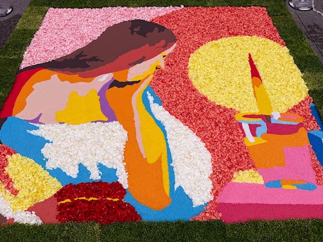 ※作品は上記原画から着想を得て、花びらのアート「インフィオラータ」の技法を用いて再構成を試みたものです。