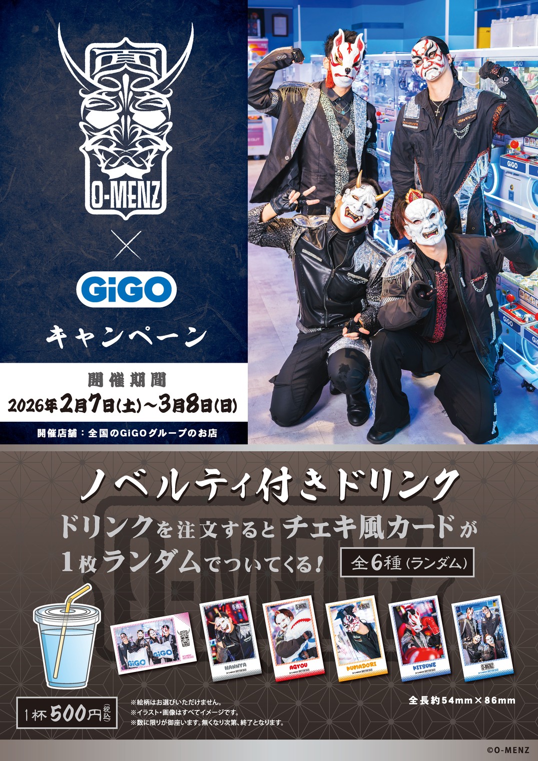 株式会社GENDA GiGO Entertainment(本社:東京都港区 代表取締役社長:二宮 一浩、以下「当社」)は、GiGOグループのお店において、メンバー全員がお面を着用する謎のダンス集団「O-MENZ」(オーメンズ/METEORA st.所属)との、初コラボレーション施策「O-MENZ×GiGOキャンペーン」を、2026年2月7日(土)より開催いたします。