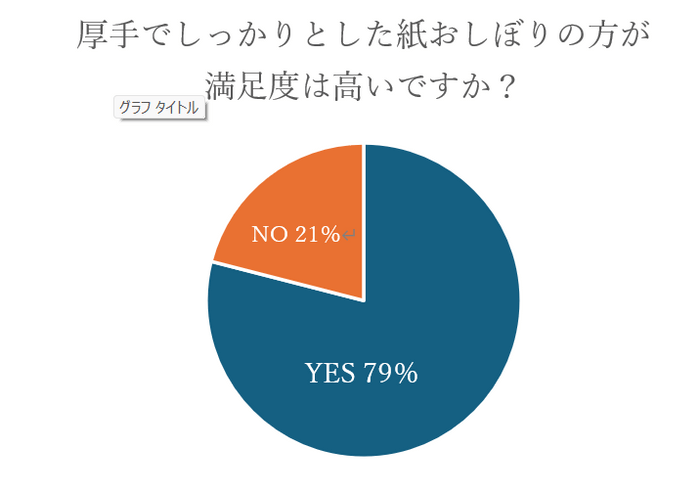 ●79%の人が「厚手でしっかりとした紙おしぼりの方が満足度は高い」と回答。