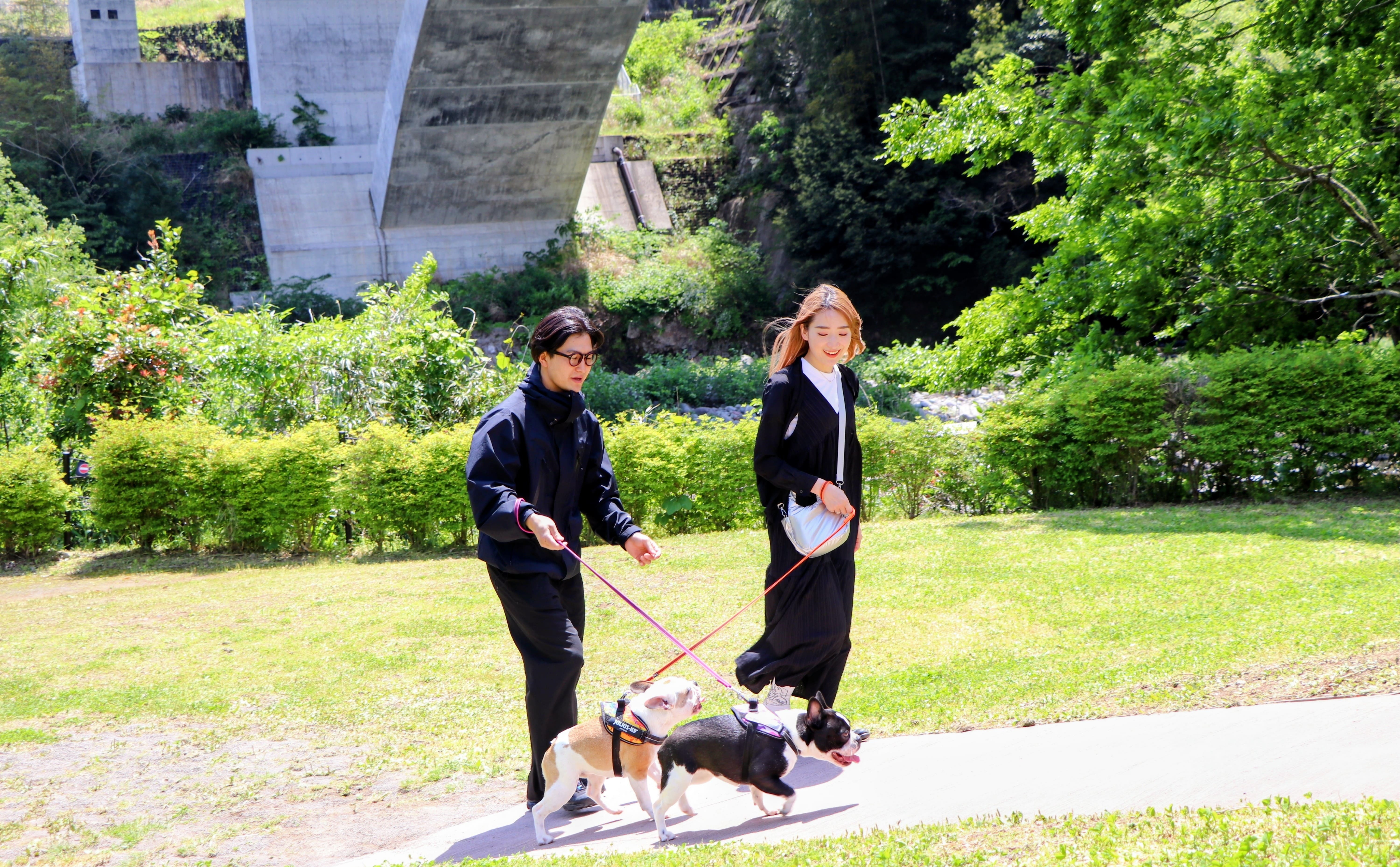 - 水際公園でお散歩可能、芝生広場や小道で愛犬と自由に歩ける