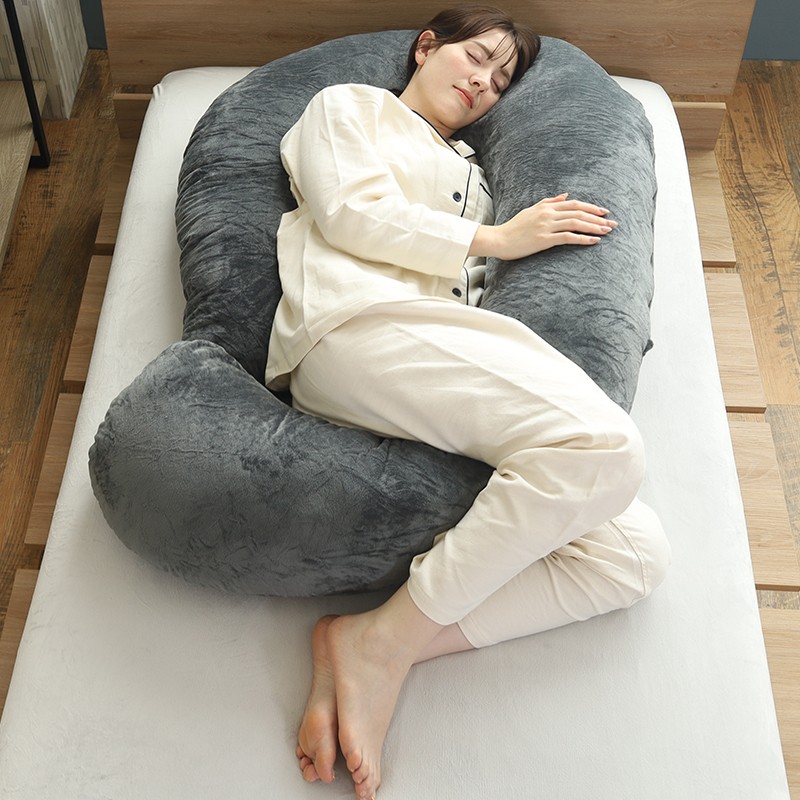抱き枕は、横向き寝の姿勢をサポートするだけでなく、抱きつく安心感によりスムーズな睡眠導入や、質の良い睡眠をサポートしてくれる寝具です。HugFormaは抱き枕に「抱きつく」と同時に、「包まれる」をプラスして睡眠中の安心感をよりアップさせました。さらに睡眠中の身体全体の負荷分散と疲労回復の促進を実現する、横向き寝に特化した大型抱き枕です。