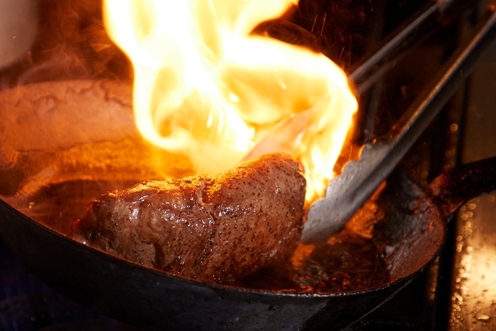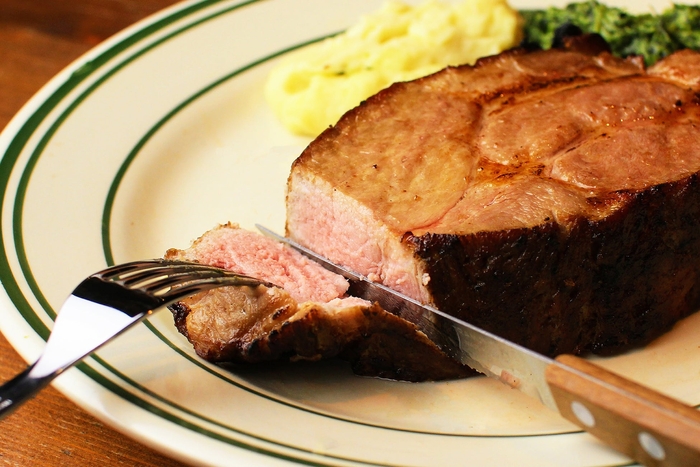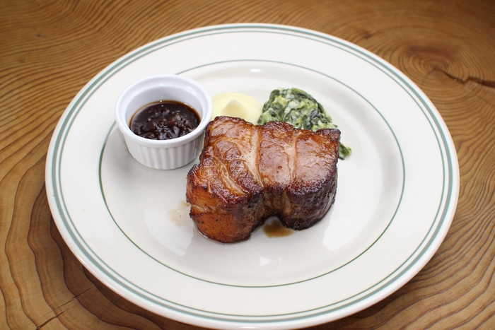 しっかりとした赤身にさす脂身は甘く、旨味を感じさせるが、それでいてくどくない。そんな豚肉の肩ロースを塊肉のステーキにするのはピッタリだ。実際来店するお客さんからは、「豚肉なのにさっぱりしていて美味しい」や「塊の肉を食べたいならココ」という評価をされている。