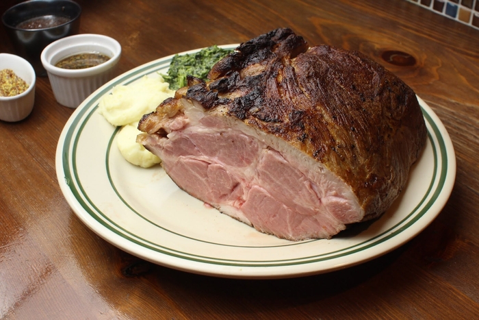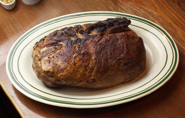 2kgの肉の塊をそのまま、長時間をかけて中心までしっかりと熱を通すため、中はピンク色に仕上がる。提供前に表面だけカリッと焼き上げる。クリスピー状の表面の香ばしさが食欲を刺激し、しっとりジューシーな肉質がクセになる味わいだ。