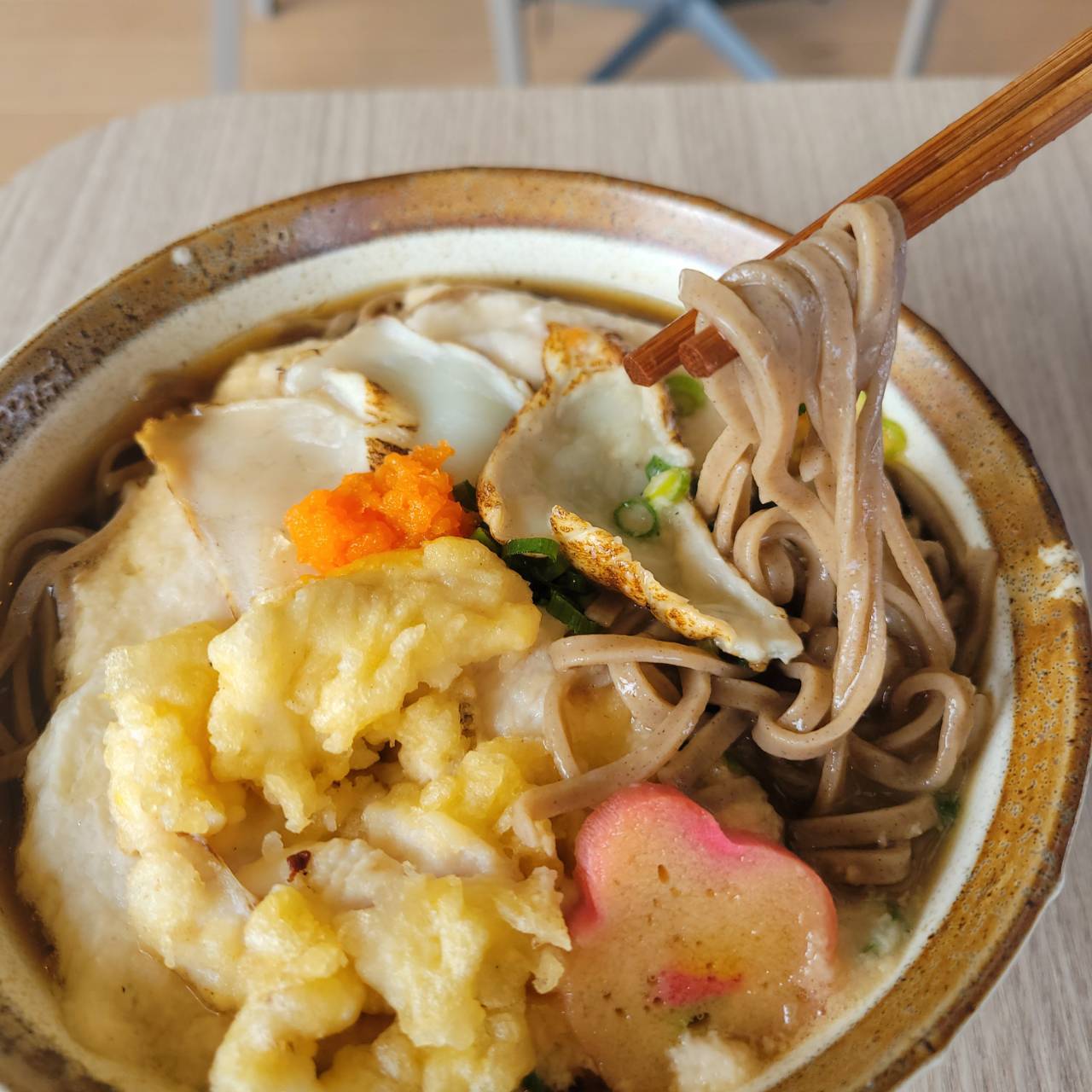 まだまだ寒いこの季節にはぴったり!ふぐの炙りに白子天ぷらの具だくさんの温かいそばです!
