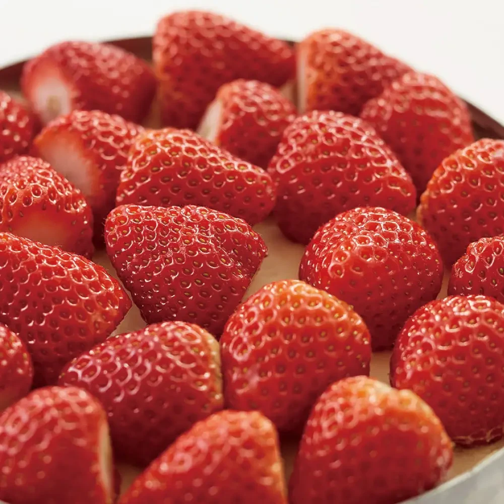 どこを切ってもまるごとイチゴがぎっしりと並ぶ魅力的な断面