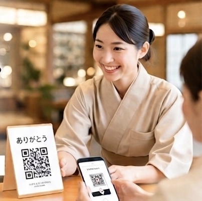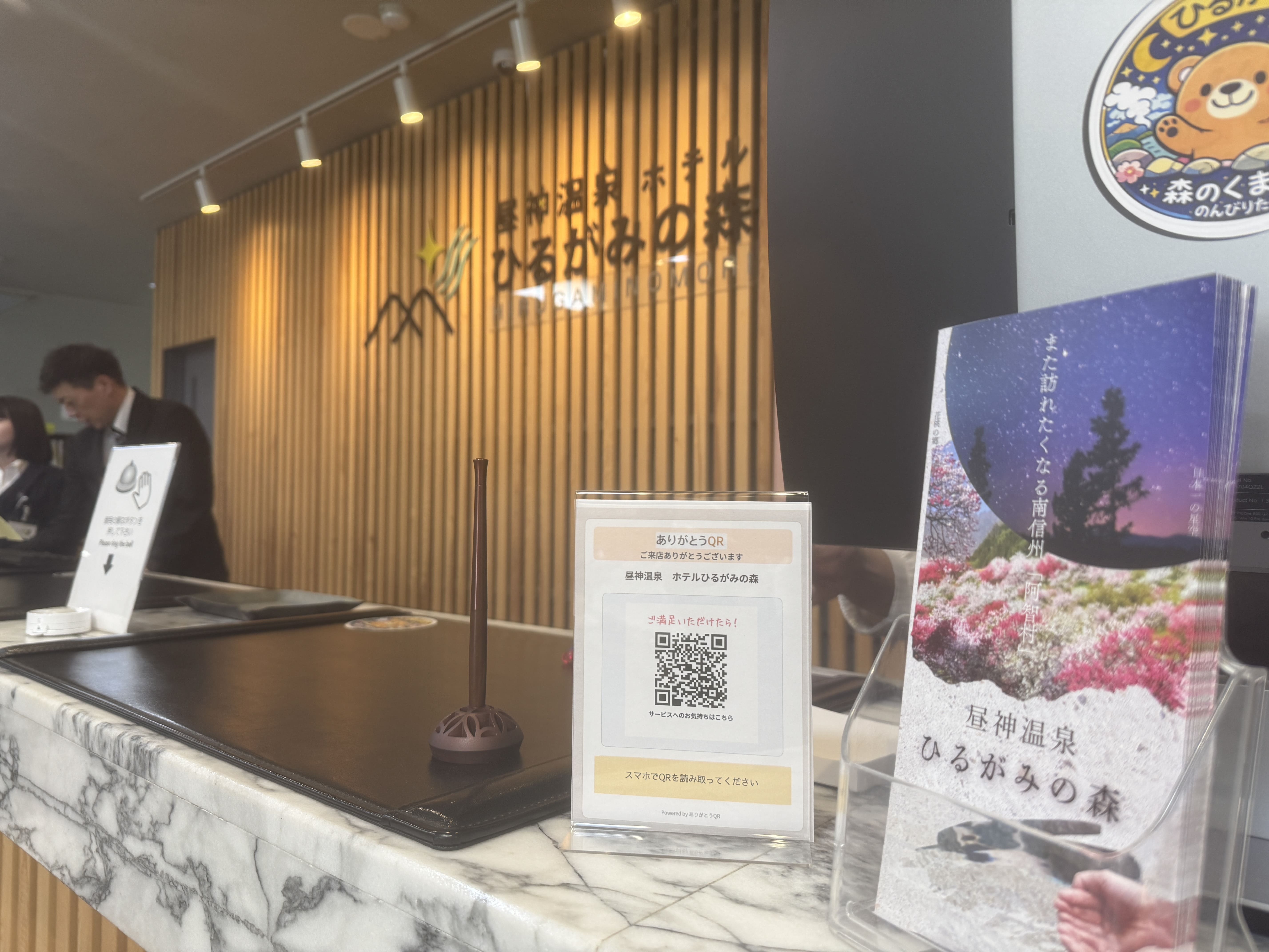 長野県阿智村・昼神温泉の旅館「ひるがみの森」では、旅館に古くからある「心付け文化」を、今の時代に合わせて残す取り組みとして、「ありがとうQR」を4月20日から館内に設置しました。