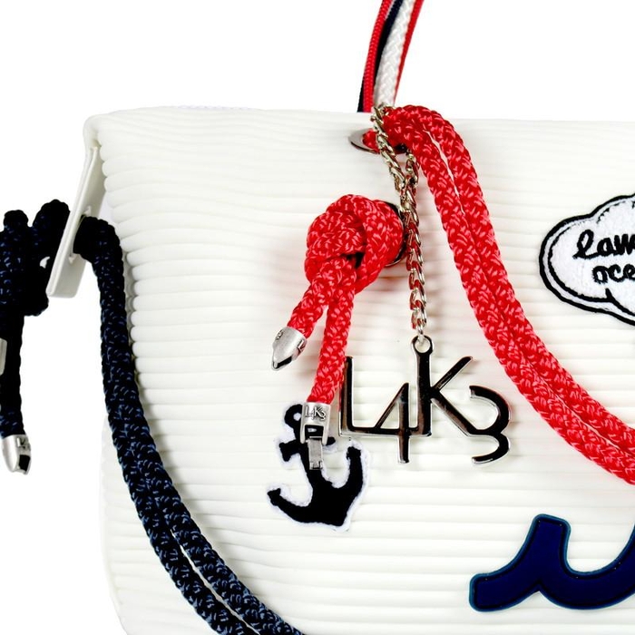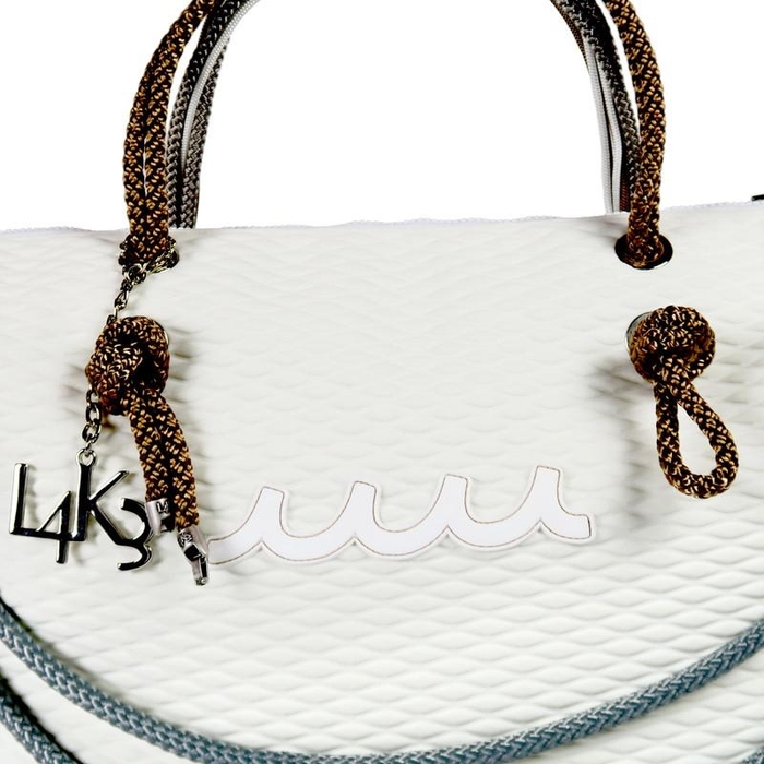 航海用ロープやウェットスーツの素材でも知られる”ネオプレン”などをファッションに取り入れた感度の高いアイテムを展開するイタリアブランド「L4K3(レイク)」から、「ラグジュアリー&ユニーク」をコンセプトとするラグジュアリーグッズブランド「muta(ムータ)」とのコラボレーションBAGが登場。世界でも有数のロープ生産ファクトリーという背景を持つL4K3が生み出すバッグにmutaのエッセンスが加わり、よりキャッチーに、よりラグジュアリーに進化したスペシャルバッグが誕生しました!