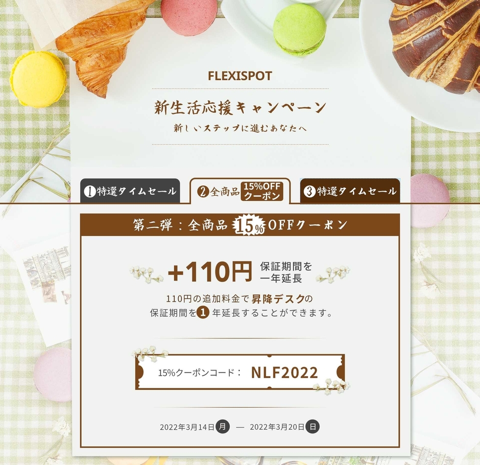 オフィス用品の製造・販売を行うFlexiSpotは、この春から新生活をスタートするみなさまに向け、デスクのお得なキャンペーン第二弾、第三弾を開催いたします。