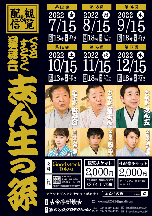 古今亭研鑽会『ぐっどすとっく落語会志ん生の孫9月公演』開催決定 カンフェティでチケット発売