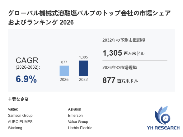 上記の図表/データは、YHResearchの最新レポート「グローバル機械式溶融塩バルブのトップ会社の市場シェアおよびランキング 2026」から引用されています。
