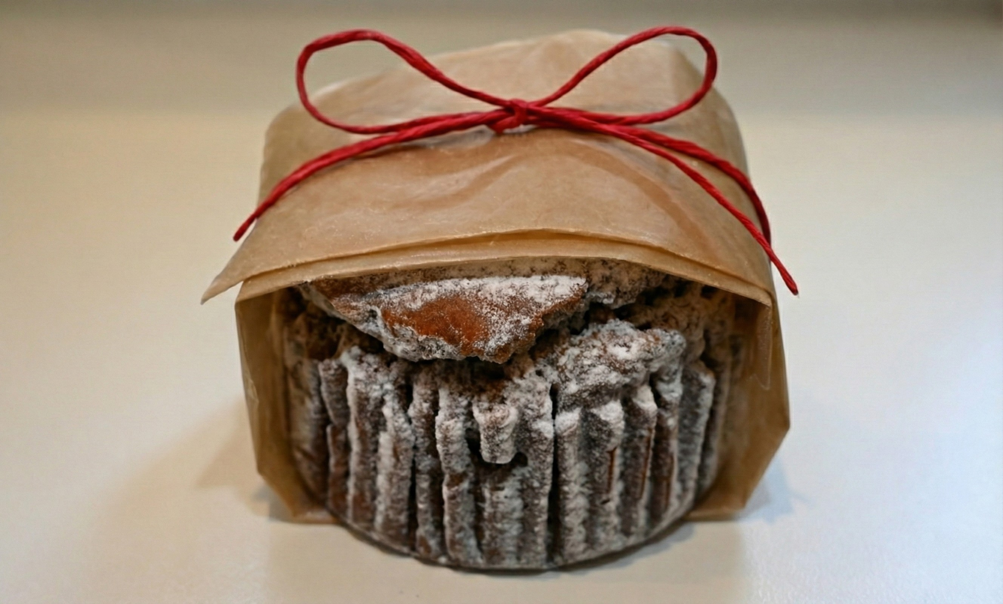 まるで粉雪が積もったようなマフィンを、スタッフが一つずつ丁寧に包んでいます。