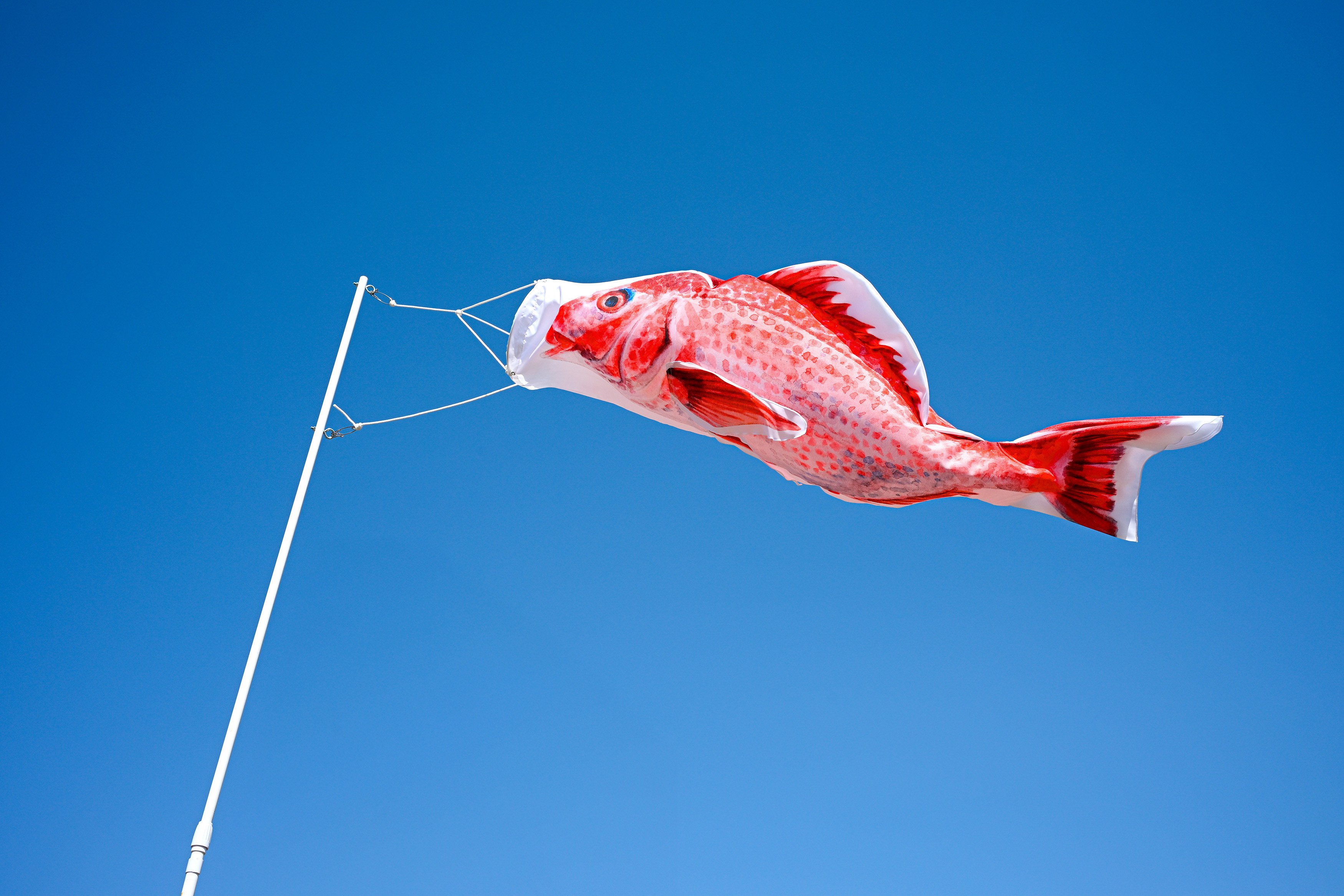 「布を立体に膨らませる縫製構造・職人によるグラデーション染色・軽くて丈夫な素材設計」これらの技術により、風を受けて自然に泳ぐような動きを実現しています。