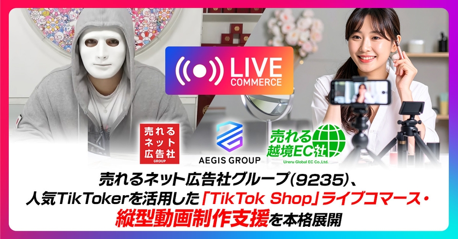 株式会社AEGIS GROUP(本社:東京都渋谷区、代表取締役:和田 侑也、以下「当社」)は、売れるネット広告社グループ株式会社(本社:福岡県福岡市、代表取締役社長 CEO:加藤 公一レオ、証券コード:9235、以下「売れるネット広告社グループ」)の連結子会社である株式会社売れる越境EC社(本社:東京都港区、代表取締役社長 CEO:髙橋 宗太、以下「売れる越境EC社」)と、「TikTok Shop」を活用したライブコマースおよび縦型動画制作支援を本格展開することをお知らせいたします。