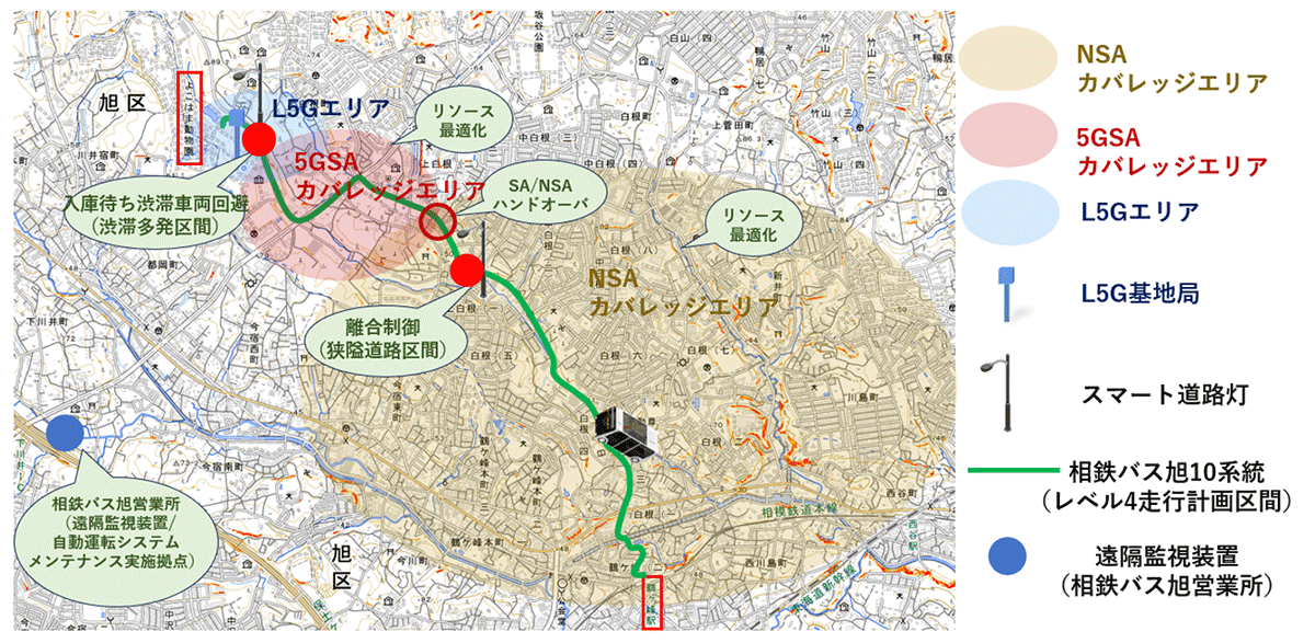 横浜市で、自動運転におけるローカル5Gと路側インフラを活用した自動運転走行支援および無線リソース最適化による車内遠隔監視の実証を開始