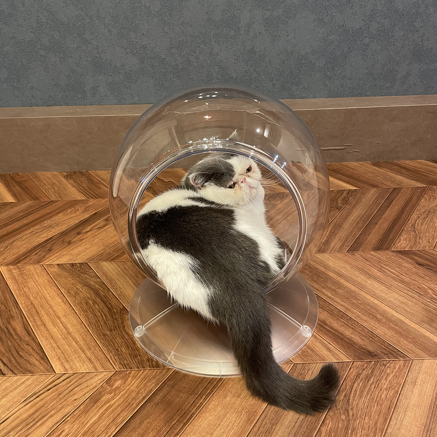 猫ちゃんの「かわいい」をとことん楽しめる キャティーマンの全面透明の球体型猫ベッド 『Clear spot』新発売