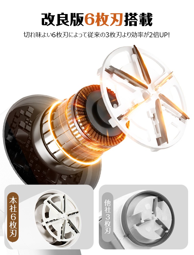 強力6枚刃でスピーディーに毛玉除去