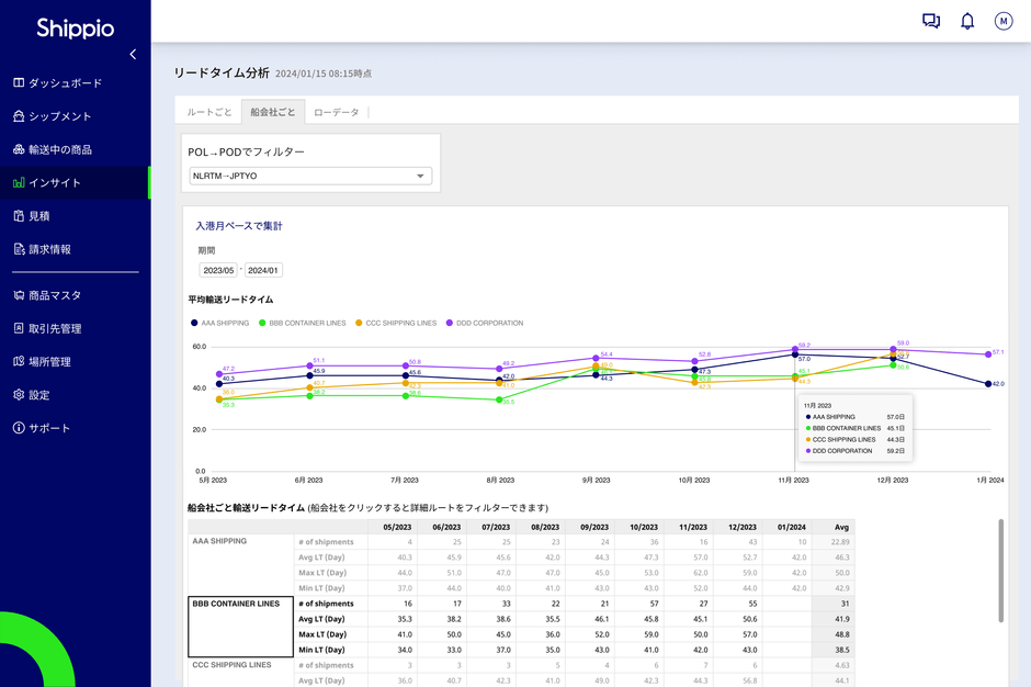 「Shippioインサイト」ベータ版を通じて、Shippioはお客様のサプライチェーン改善と、意思決定における効率性と競争力を強化することへの取り組みを続けます。