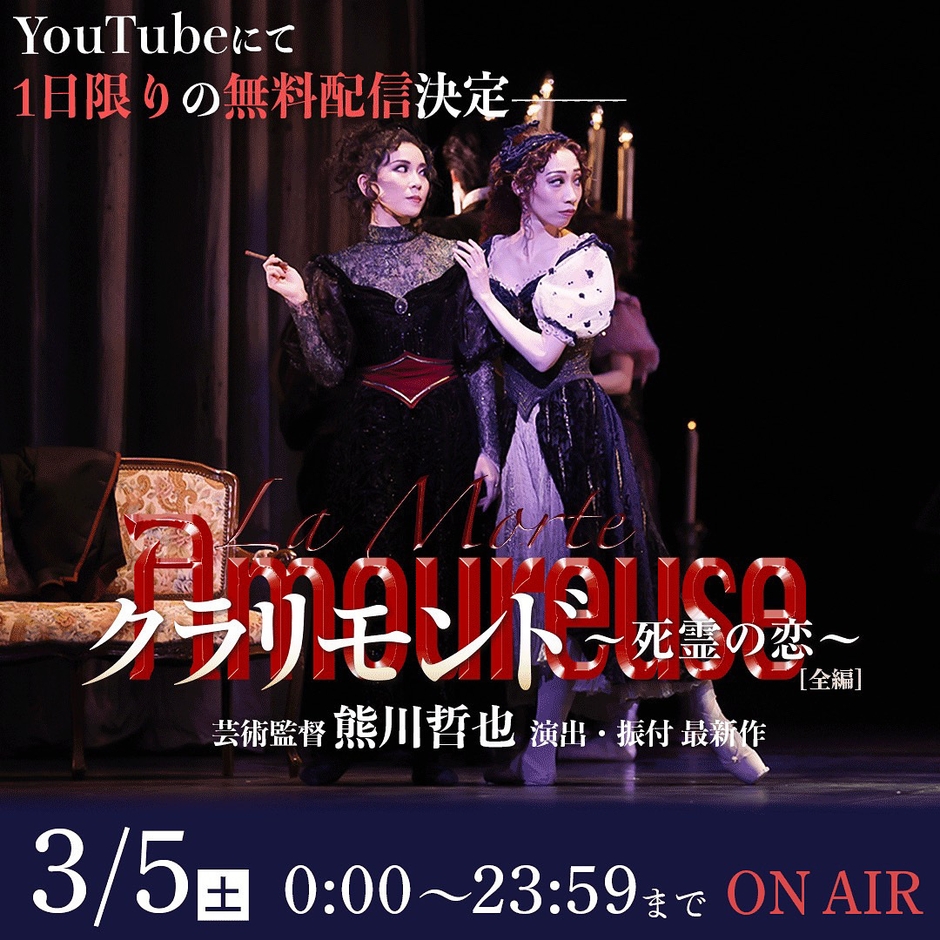 1月末に上演された話題の新作『クラリモンド~死霊の恋~』全編。物語バレエによる新境地開拓と呼び声が高い傑作を、YouTubeにて特別に無料配信いたします。1日限定の特別公開となりますのでお見逃しなく!