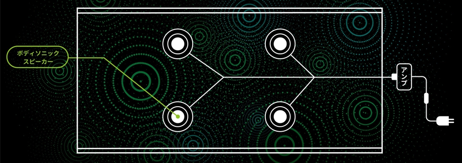 通常、人間は空気の振動を鼓膜で捉えて音を感じていますが、TTM-V20 では畳と接触した身体の部位から音の振動を感じ取ることが出来ます。