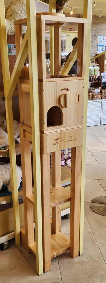カプセルトイマシーンも木製で製造されており、自然をイメージした見た目が特徴です。また、お金ではなく木のコインを入れてハンドルを回すつくりは珍しく、大人も子供も楽しむことができます。