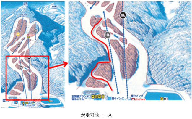 ゲレンデは、13コース。緩斜面が多く初心者・ファミリー向けスキー場。ふわさらな雪が楽しめる非圧雪の神雪ゾーンに加え、「グラトリゾーン」「ウェーブゾーン」「第一生命スノーパーク」を新設