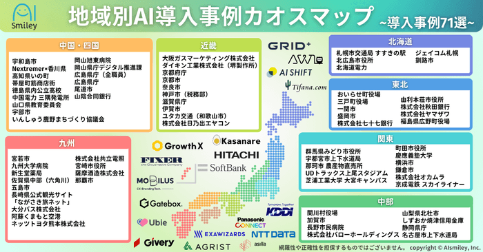 アイスマイリー、地域別AI導入事例カオスマップを公開!7地方区分ごとに全71のAI導入事例をご紹介