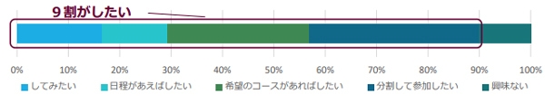 9割が日本一周旅行をしたいと回答。分割して参加したい33%、希望のコースがあればしたい28%等。