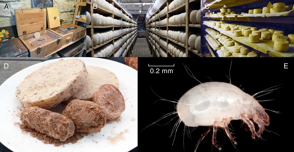 ヨーロッパで伝統的にコナダニをチーズの熟成に用いる、 3つの遠く離れたチーズ工房において、「蔵付き酵母」ならぬ 「蔵付きダニ」は同種のチーズコナダニであることを発見