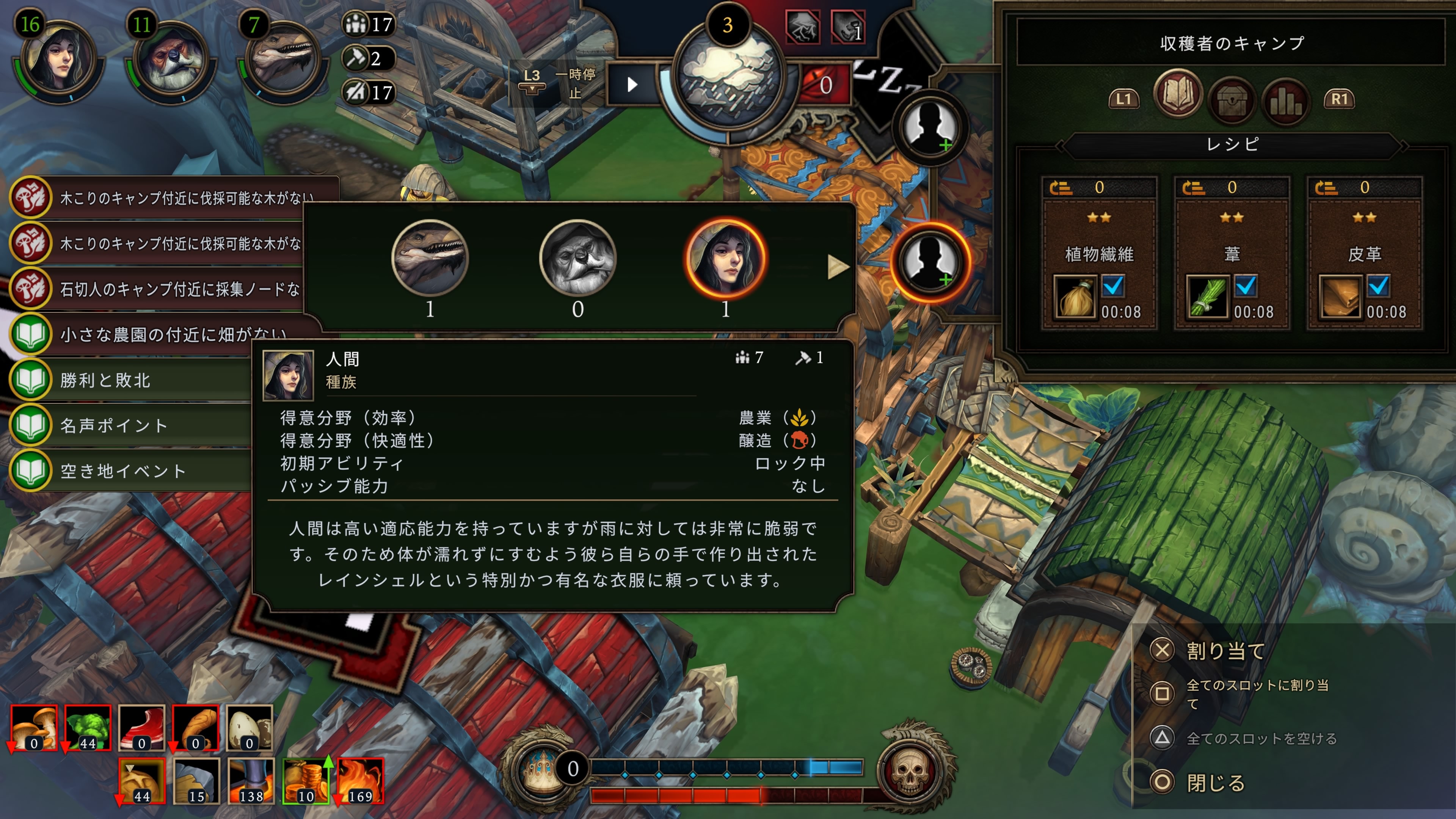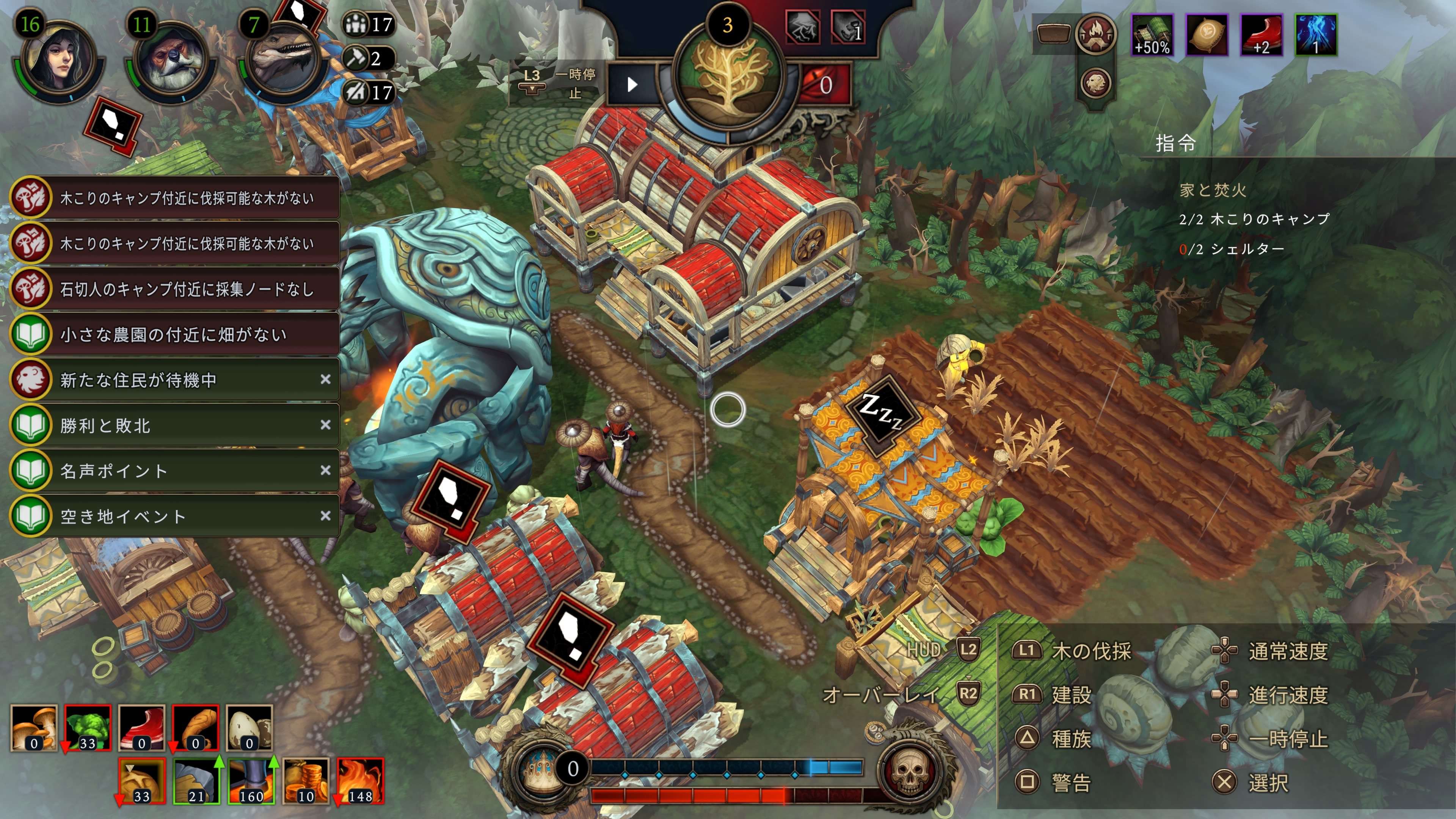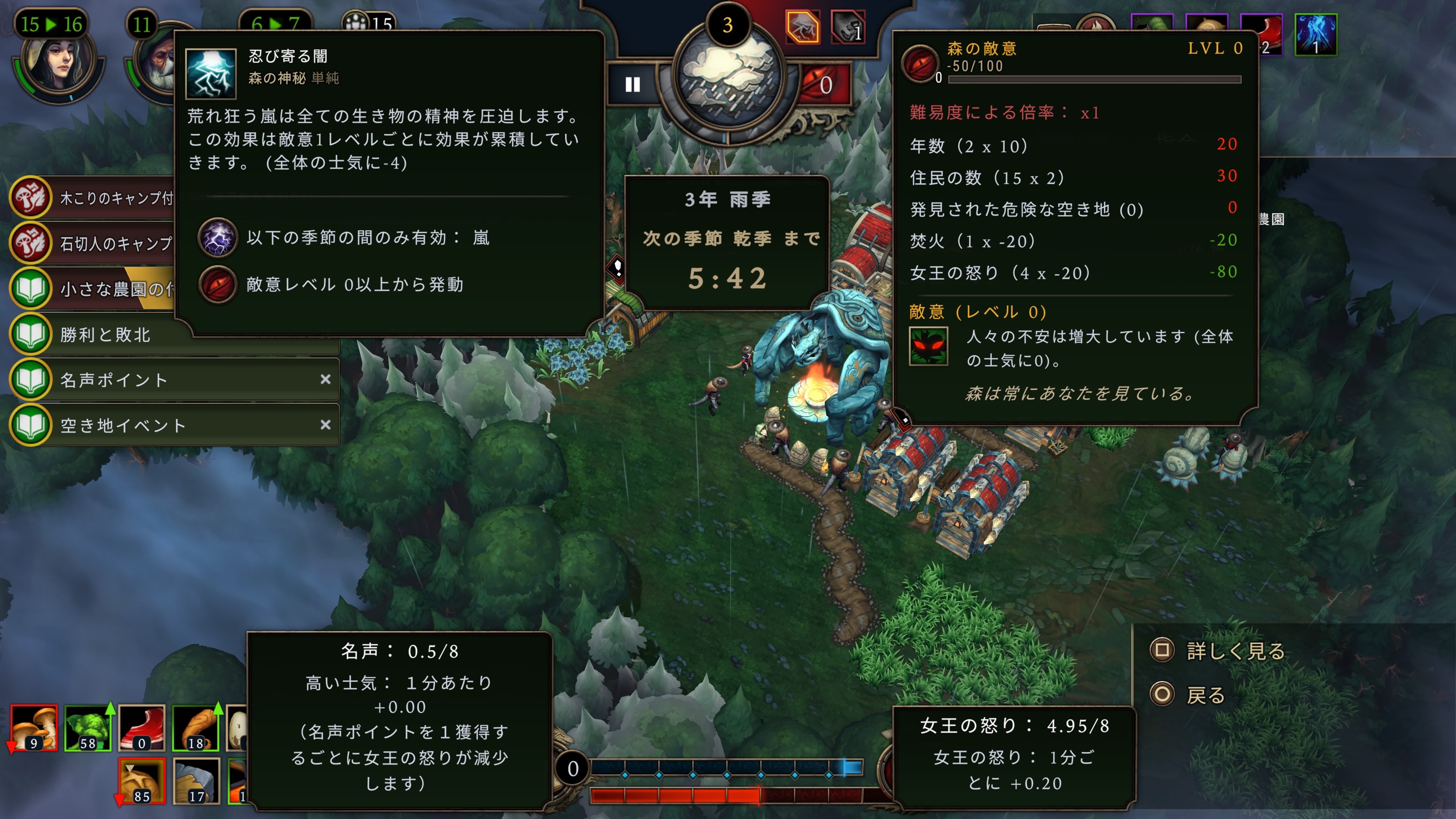 女王の命を受けた「総督」として、人間、ビーバー、リザード、キツネ、ハーピーを率いて荒野を開拓しよう。